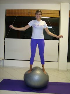 Parece fácil. Mas os exercícios na bola valem por um treino com peso. Trabalhamos com a sobrecarga do próprio corpo e a resistência da bola. Ficar em pé na bola, como na foto é um desafio e tanto. Suellen, Ana, Andreia, fizeram várias aulas até chegar nesse estágio. “Começaram ajoelhando na bola e só quando senti que elas estavam segura, iniciei outros exercícios ate ficar em pé.